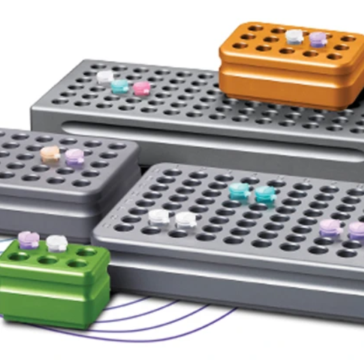 CoolRack Thermoconductive Tube Rack modules are precision-engineered sample modules manufactured from a novel thermo-conductive alloy material, designed to evenly distribute temperature across all wells providing uniform and consistent temperature to all samples (+/-0.1°C).